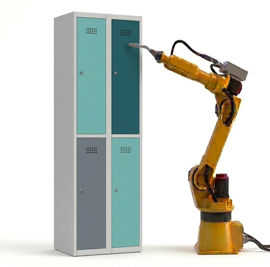 Tato kovová šatní skříňka je dodávána ve zcela smontovaném stavu, což vám ušetří drahocenný čas i starosti s instalací. Její korpus je strojově svařovaný, což zaručuje absolutní geometrickou přesnost, extrémní tuhost a maximální nosnost. Na rozdíl od skříněk v demontu u ní nehrozí postupné povolování spojů, a to ani při každodenním náročném používání. Skříňku stačí po doručení pouze umístit na požadované místo a je okamžitě připravena k provozu.