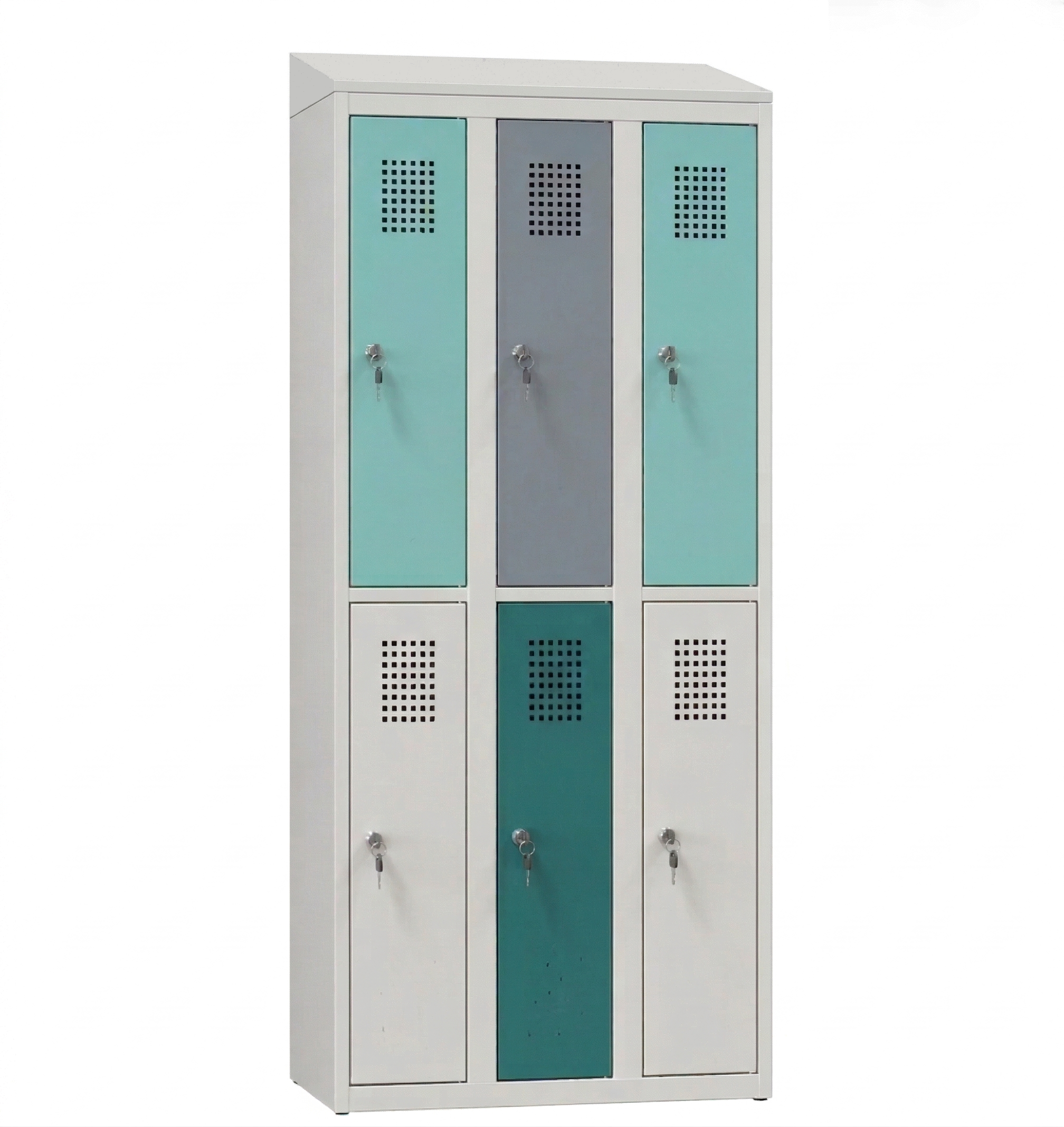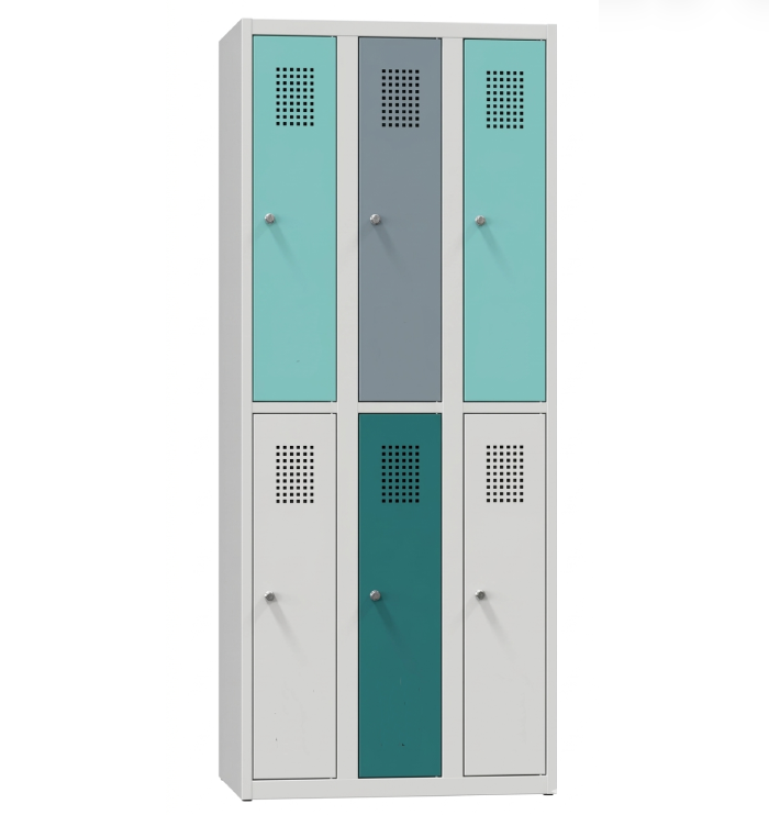 Skříňka šatní plechová šestidveřová BR9618 dělenáRůzné barvy na výběr, různé typy zámků, výška 185 cm |