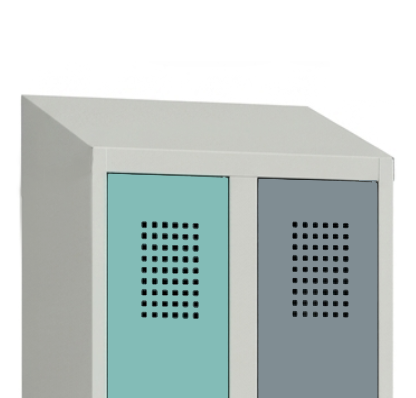 Všechny naše skříňky lze opatřit šikmou stříškou. K čemu je to dobré? Vaši návštěvnici nebo žáci si nebudou na skříňky nic odkládat a díky tomu na nich nic nezapomenou. Jednoduché, ale účinné!