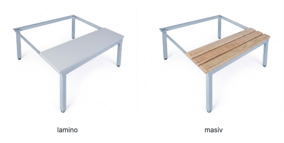 Varianta sedáku lavičky buď s deskou lamino 18 mm s 2 mm ABS hranou nebo latěmi z masivu.
