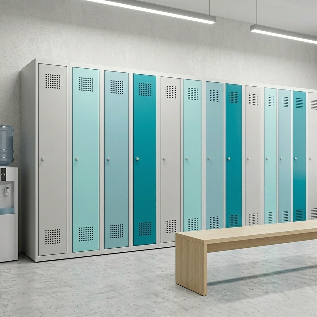 Naše šatní skříňky chrání kvalitní práškový polyesterový lak, který garantuje snadnou údržbu a perfektní ochranu vůči korozi i oděrkám. Zatímco šedý korpus (RAL 7035) tvoří univerzální základ, barvu dveří si můžete zvolit z různých variant. Největší výhoda? Díky standardizaci barev RAL máte jistotu, že i když budete šatnu rozšiřovat a dokupovat další skříňky za několik let, vždy se trefíte do naprosto stejného odstínu.
