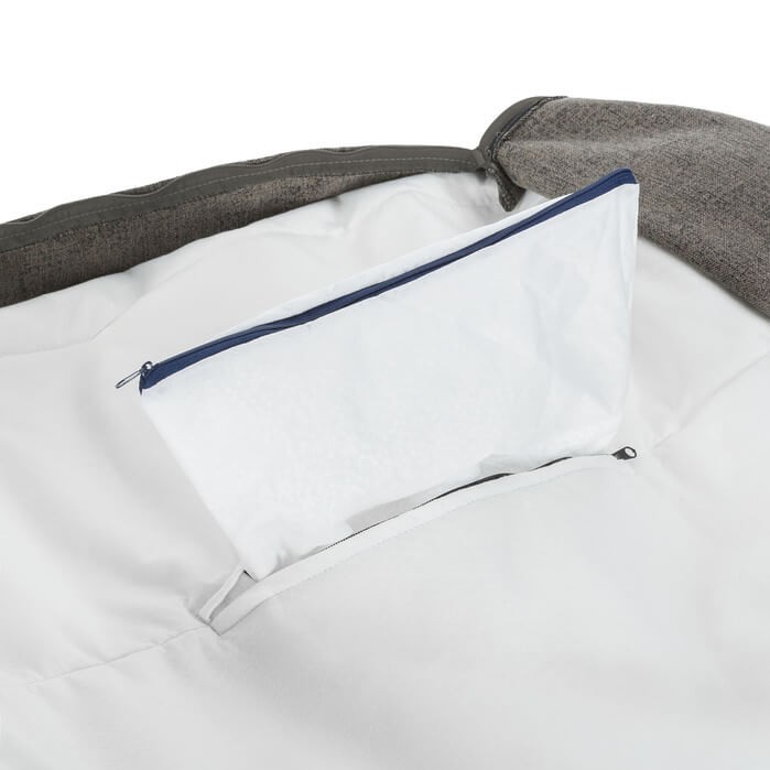 Vnitřek pytle je vyplněn certifikovanými EPS kuličkami, které lze kdykoli doplnit otevřením plnicího otvoru. Tento otvor je zabezpečený dvojím zipem a skrytým jezdcem, aby se předešlo nechtěnému otevření, zejména pokud jsou děti v blízkosti. Samotná výplň EPS je potravinářské kvality, zdravotně nezávadná a certifikovaná. Kuličky jsou dostatečně husté a malé, aby udržely pohodlný tvar sedacího pytle a předešly rychlému zhutnění. Při registraci v našem e-shopu, můžete v budoucnu dokoupit náplně EPS za výhodnější ceny.