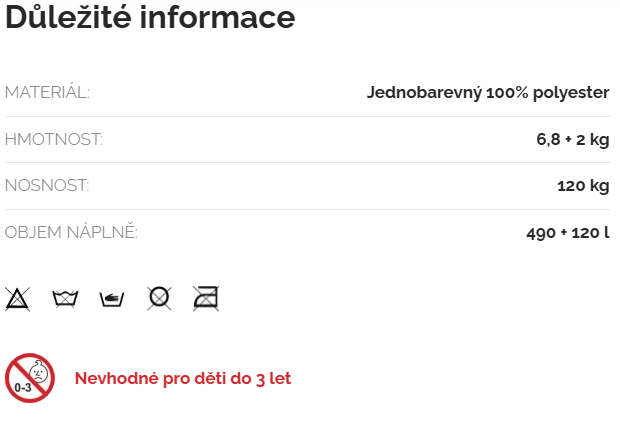 Vysokou odolnost, kvalitu a dlouhou životnost našich sedacích pytlů zajišťují dvojité švy, použití jen kvalitních a certifikovaných materiálů a také vícestupňová kontrola při jejich výrobě.