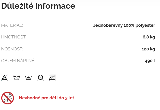 Vysokou odolnost, kvalitu a dlouhou životnost našich sedacích pytlů zajišťují dvojité švy, použití jen kvalitních a certifikovaných materiálů a také vícestupňová kontrola při jejich výrobě.