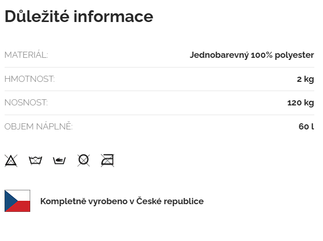 Vysoce kvalitní látka je nenáročná na údržbu. Případné nečistoty lze jednoduše odstranit vlhkou houbičkou s mýdlovou vodou.