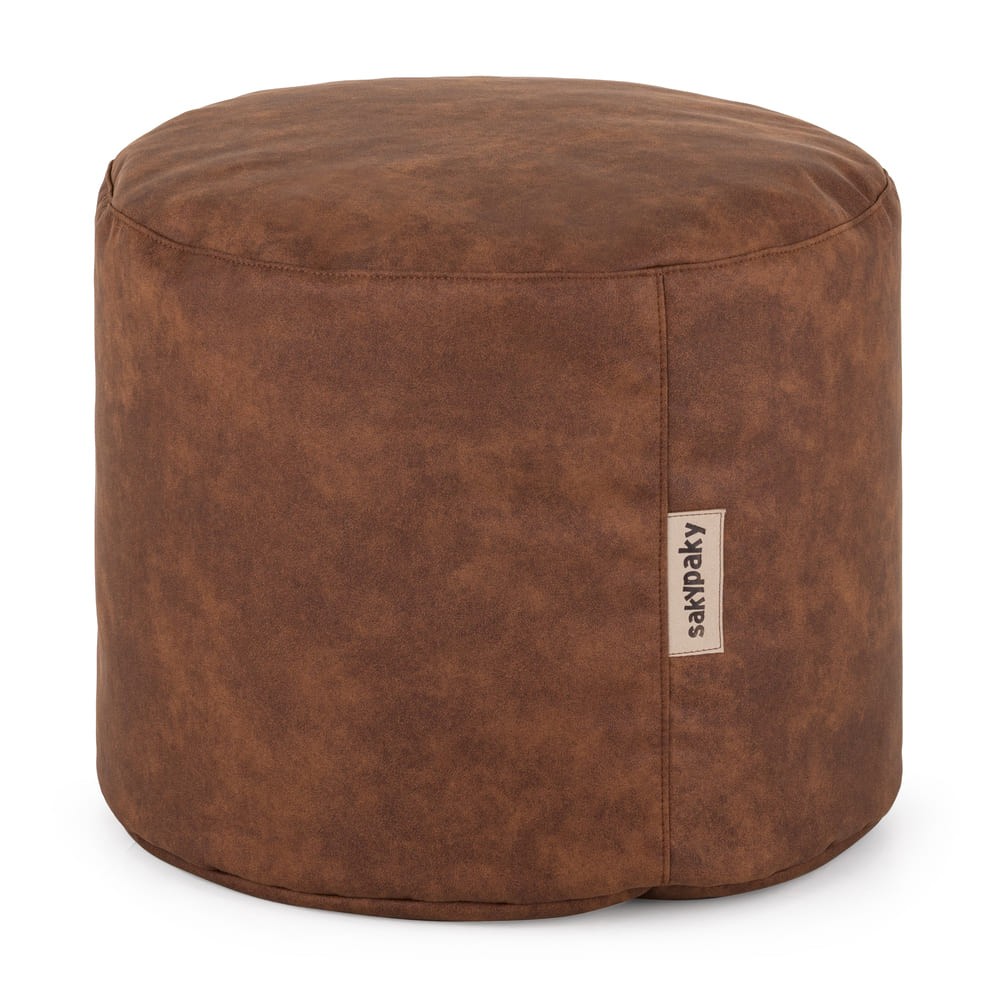 Jednovrstvý kulatý kožený taburet, který nemá dodatečný vnitřní obal.