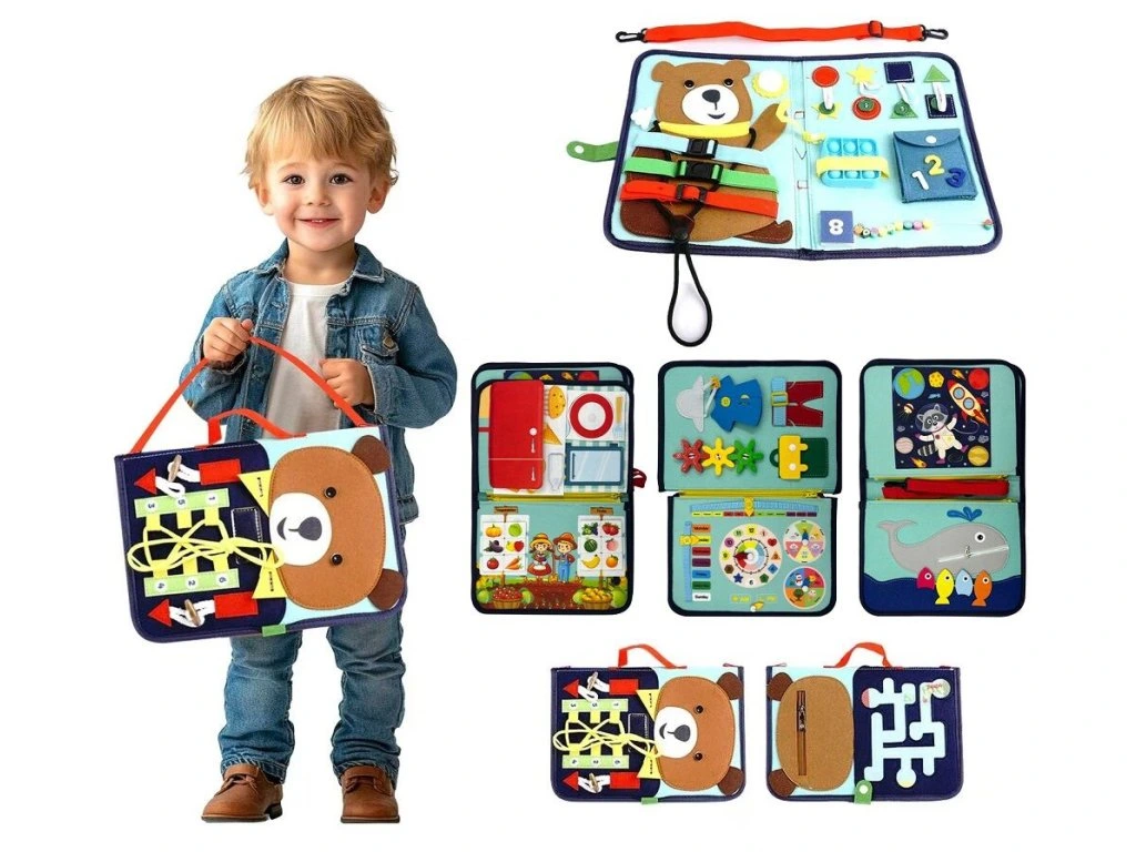 Objevte kouzlo senzorické "busy activity" knihy, která zábavnou formou rozvíjí jemnou motoriku, logické myšlení, soustředění i smyslové vnímání Vašeho dítka. Kniha obsahuje různorodé motorické aktivity jako jsou knoflíky, přezky, zipy, suché zipy, tkaničky a další. Je vhodná pro hmatové, zrakové i zvukové podněty. Kniha je měkká a lehká. Senzorická "busy activity" kniha , to je zábava a rozvoj v jednom! Perfektní jako dárek k narozeninám, Vánocům nebo jen tak pro radost i rozvoj.