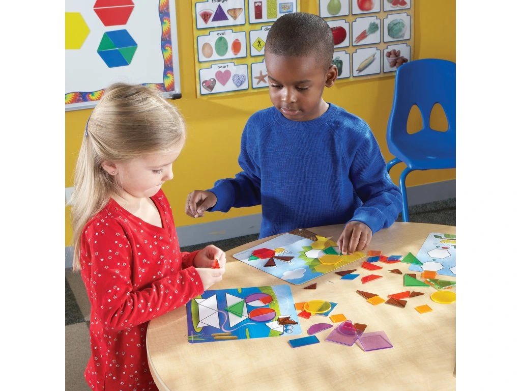 Zábavná sada aktivit zapojí děti do skládání 2D tvarů. Dílky jsou průsvitné, takže existuje několik způsobů, jak ''malovat'' každý obrázek.