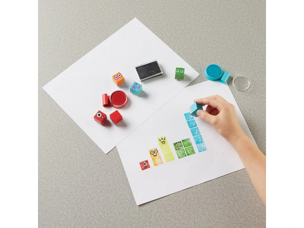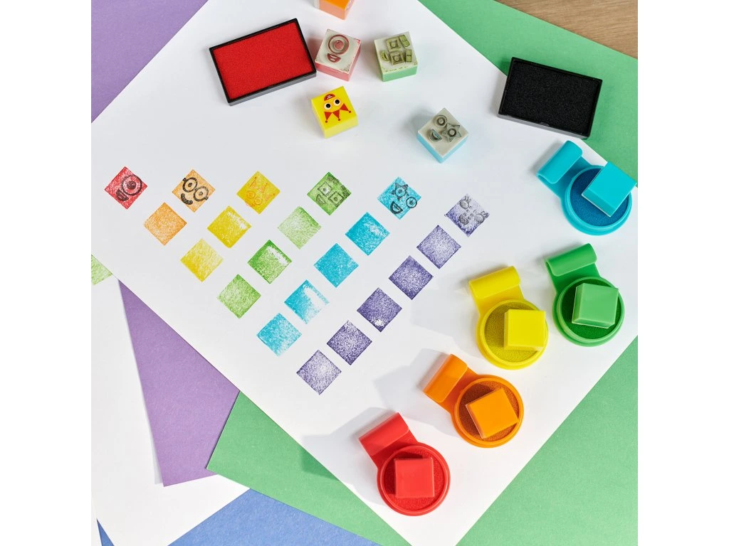 Kreativní a vzdělávací sada s opakovaně použitelnými razítky a omyvatelnými inkousty, která se dá použít samostatně nebo jako skvělý doplněk k číselným kostkám Numberblock. Pomáhá rozvíjet matematické dovednosti dětí zábavnou kreativní hrou. Celá vzdělávací sada obsahuje 20 razítek pro vytvoření číselných bloků jedna až deset a 12 inkoustových polštářků. Učte děti matematiku zábavnou formou.
