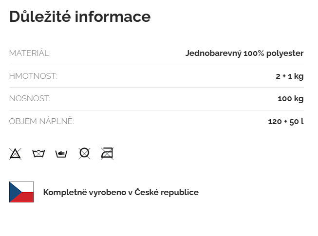Vysokou odolnost, kvalitu a dlouhou životnost našich sedacích pytlů zajišťují dvojité švy, použití jen kvalitních a certifikovaných materiálů a také vícestupňová kontrola při jejich výrobě.