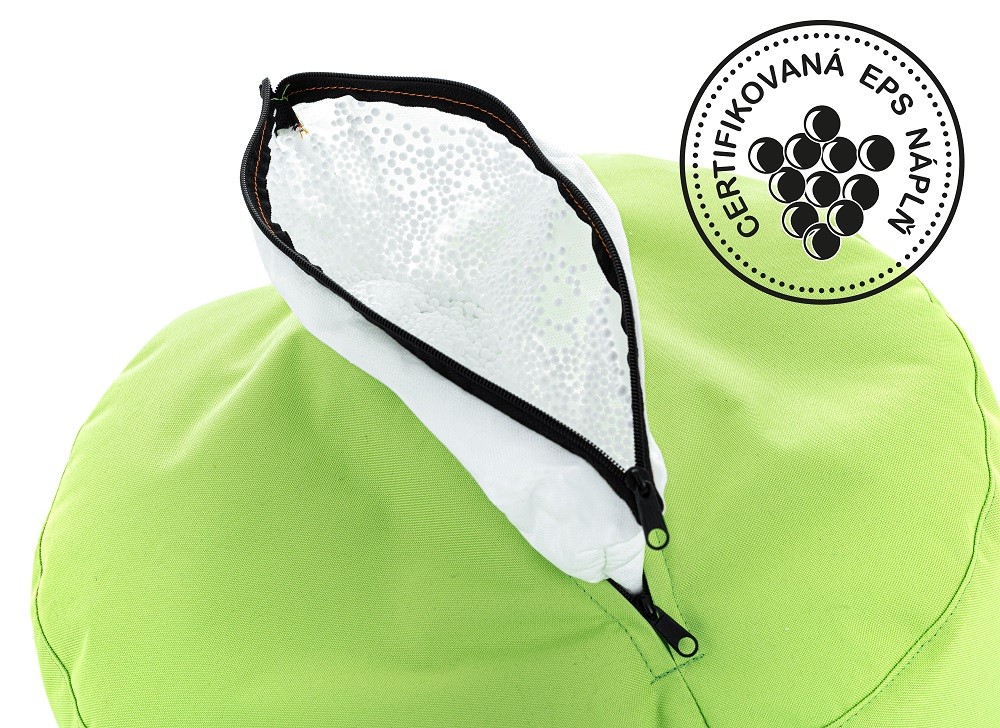 Sedací vaky Žiži a Taburet jsou opatřeny plnícím otvorem, díky němuž je možno kdykoliv v budoucnu doplňovat jeho EPS výplň. Plnící otvor je bezpečně zajištěn dvojitým zipem se schovaným jezdcem. Zvídavým dětem se tak nepodaří otvor otevřít a dostat se k náplni.