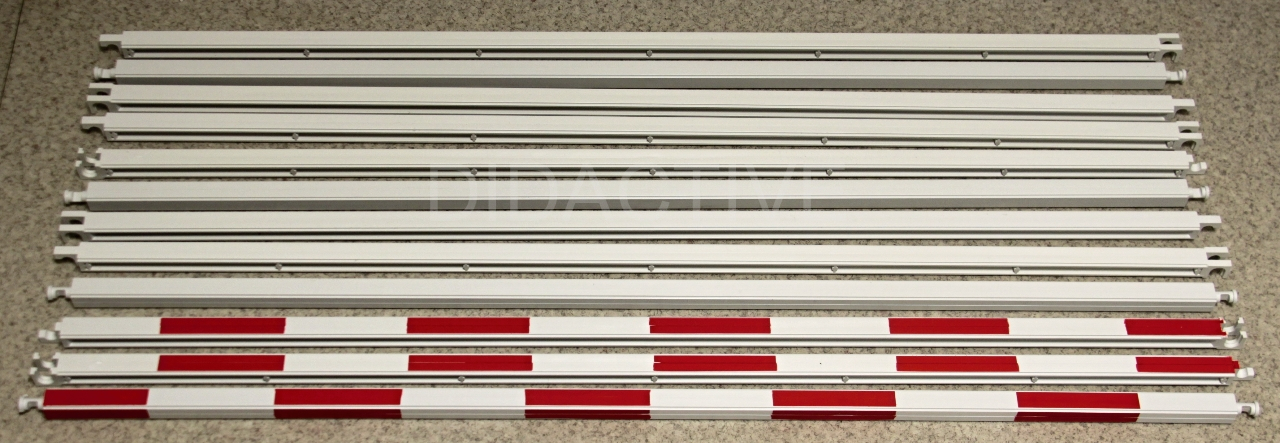 3 tyče mají červeně vyznačené decimetry (pro názorné dělení a převody)