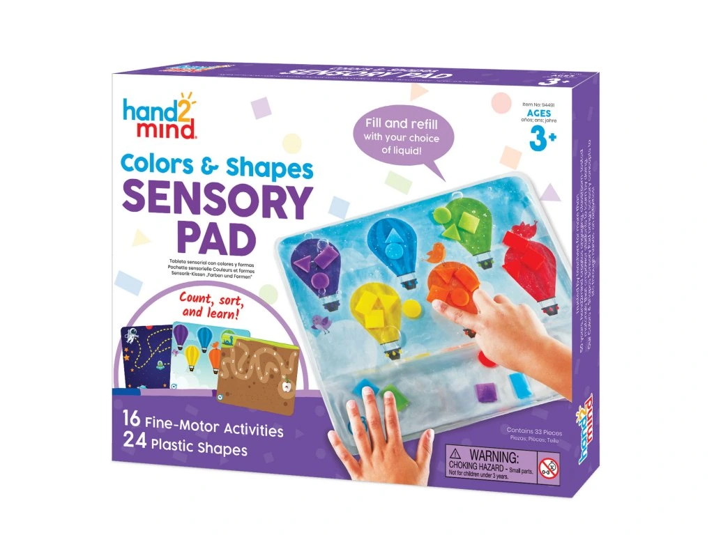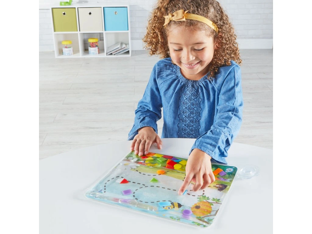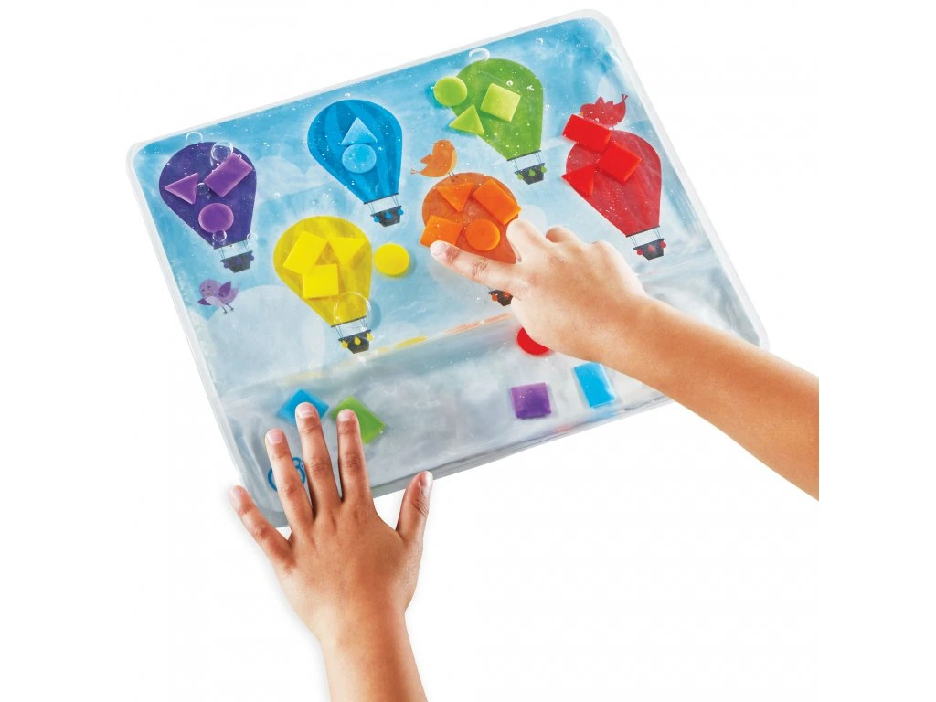 Konečně pomůcka na rozvoj jemné motoriky, která bude děti opravdu bavit. Naplňte kapsu vodou společně s barevnými tvary. Přimíchat můžete kapičku mýdla nebo oleje. Pro zajímavější efekty můžete vyzkoušet nasypat třeba flitry nebo drobné korálky. A zábava může začít.