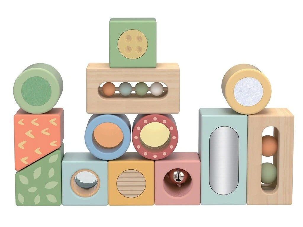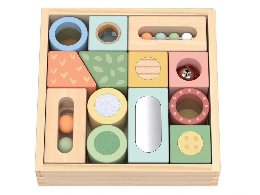 Právě jste se ocitli v ráji tvarů, barev a zvuků! Tyto kostky byly navrženy tak, aby podněcovaly dětské smysly a rozvíjely jejich kognitivní a motorické dovednosti. Poskytují dětem příležitost učit se o různých materiálech, texturách, barvách a zvucích, což přispívá k jejich smyslovému i kognitivnímu rozvoji. Díky své rozmanitosti mohou kostky dopomoci stimulovat představivost k roztodivným stavbám nebo příběhům.