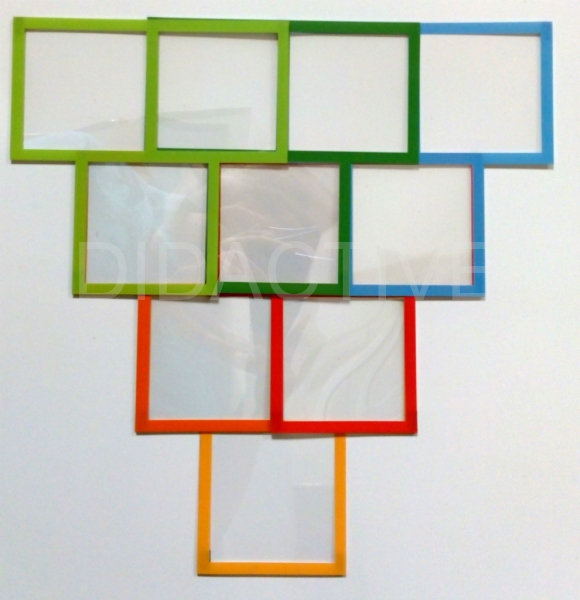 Mřížky jednotlivých základních trojúhelníků jsou v barvě žluté, oranžové, modré, světle zelené, tmavě zelené a červené. Základním materiálem je tuhá průhledná folie. Na zadní straně každého základních součtového trojúhelníku jsou přilepeny 4 malé magnetky.
