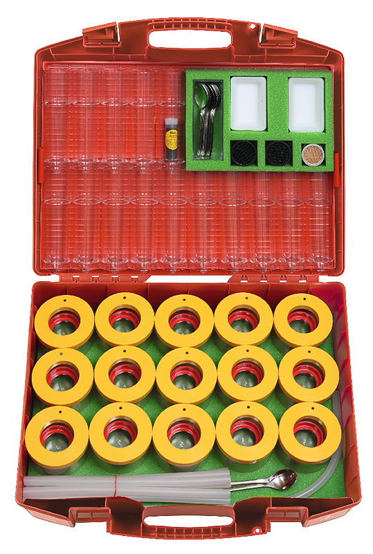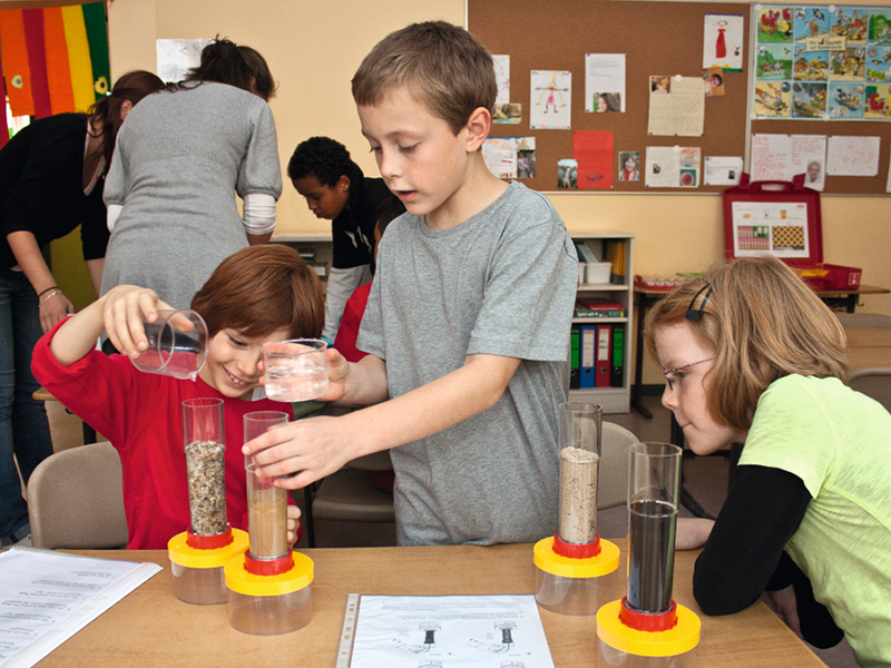 Souprava experimentování s vodou 1 – pitná a odpadní voda umožňuje provádět následující experimenty: chování vody v půdách (které typy půdy zadržují nebo propouštějí vodu); filtrování vody (pískový a štěrkový filtr zadržuje pevné látky, ale ne rozpuštěné látky jako je sůl nebo čisticí prostředky); vliv znečištěné vody na klíčení rostlin; sledování jednotlivých fází mechanického čištění vody; praktické využití principu spojených nádob.