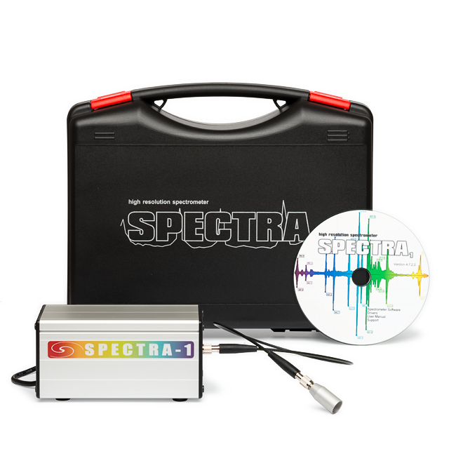 Spektrometr SPECTRA 1 je vybavený všemi potřebnými prvky, které umožňují přesné měření – od vstupní štěrbiny po detektor. Světelný signál vstupuje do přístroje flexibilním optickým vláknem, spojení s experimentem tak nemůže být jednodušší. Datové spojení s počítačem je realizované přes rozhraní USB 2.0, které je nakonfigurované a připravené na použití. Stačí posvítit na štěrbinu nebo na připojené optické vlákno, spojit přístroj s počítačem a je možné začít s experimenty. Speciálně vyrobená přechodová mřížka s kvalitně tvarovanou štěrbinou zaručuje vysoké rozlišení a spolehlivé výsledky.