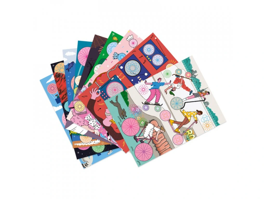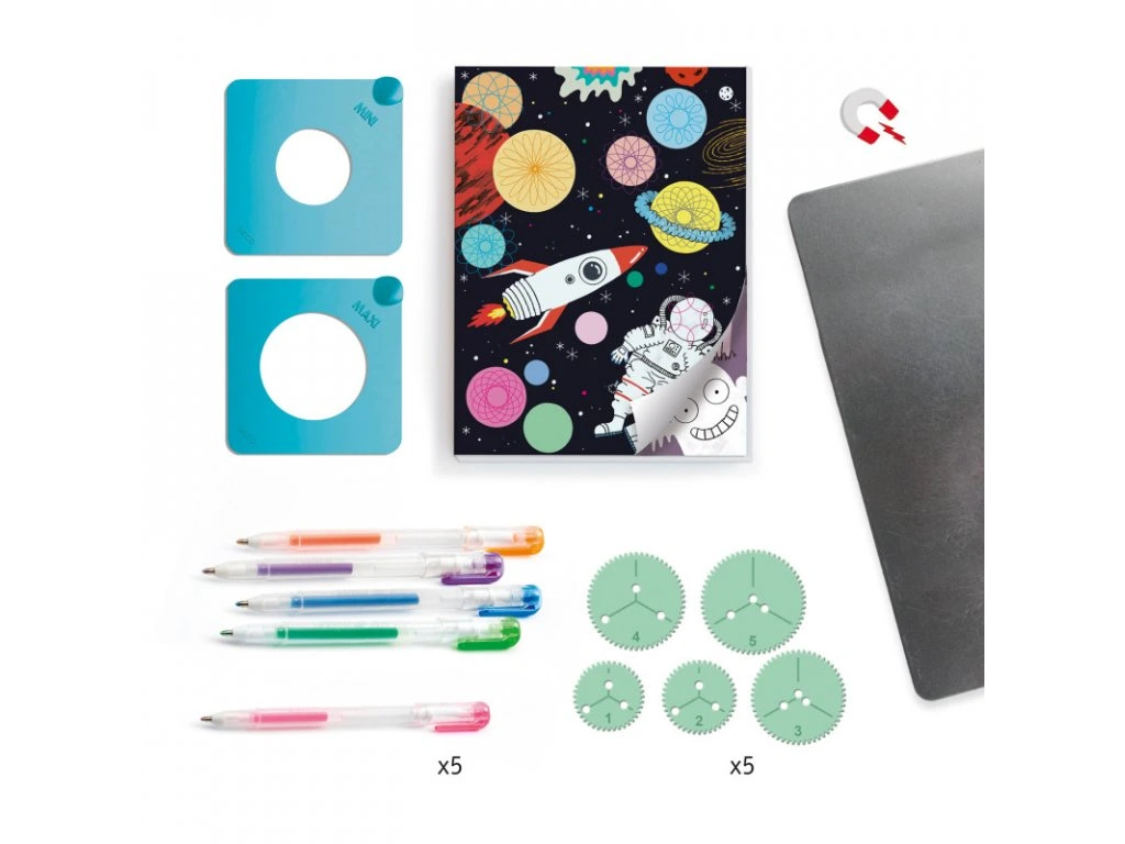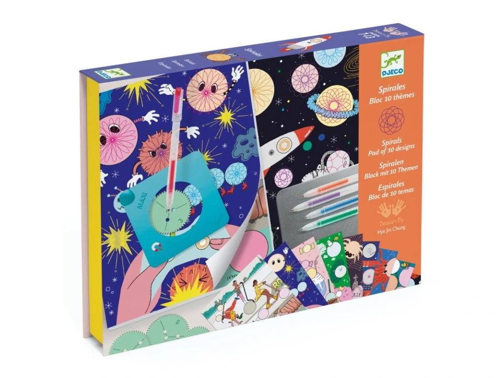 S touto výtvarnou sadou můžou děti vytvořit stovky různých spirál a stovky krásných výtvorů. Když děti vyčerpají zásobu 10 předloh, mohou tvořit se spirálami dle své fantazie.