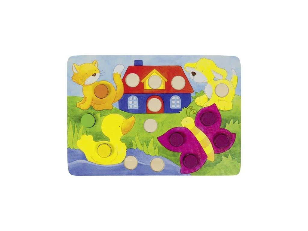 Společenská hra, která je vhodná pro nejmenší děti. Hodíte kostkou a danou barvu pak doplňujete do obrázku. Celodřevené.