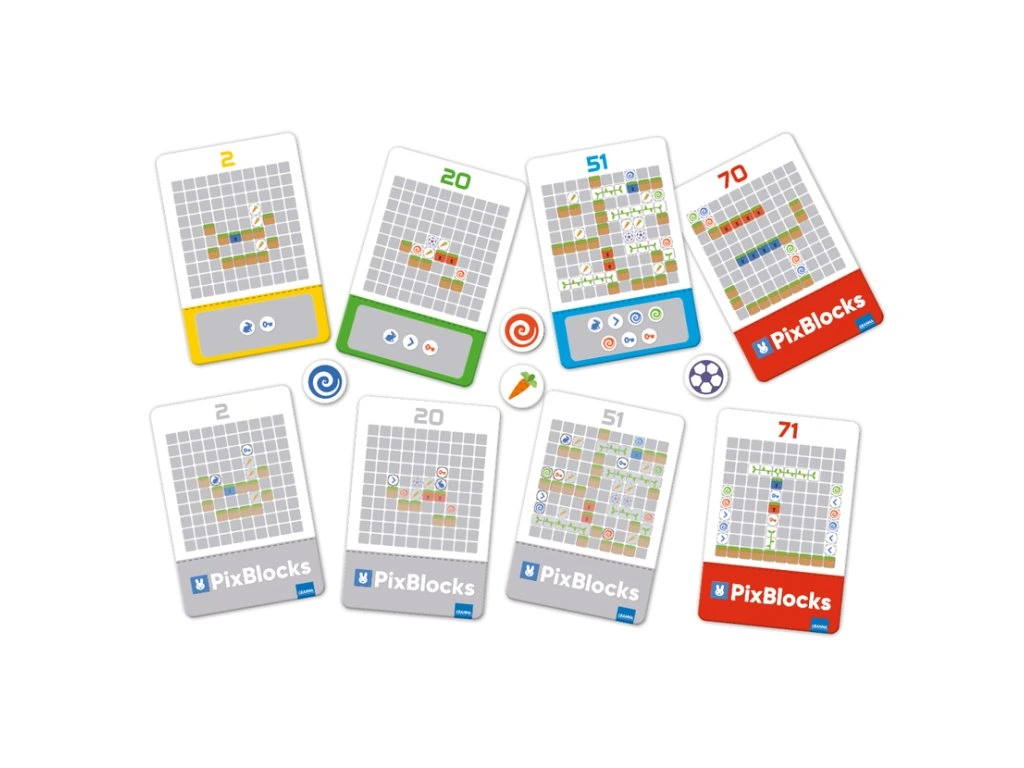 Po hrací ploše logické hry pro hráče od 7 let poskakují lakomí králíci. Je to krajina tvořená plošinami a rostlinami, mezi nimiž jsou poschovávané šťavnaté mrkvičky, které mají králíci moc rádi. Řiď pohyb králíka a snaž se, aby snědl všechny mrkvičky. Hraj, abys vyhrál, bav se – a seznamuj se přitom se základy programování!