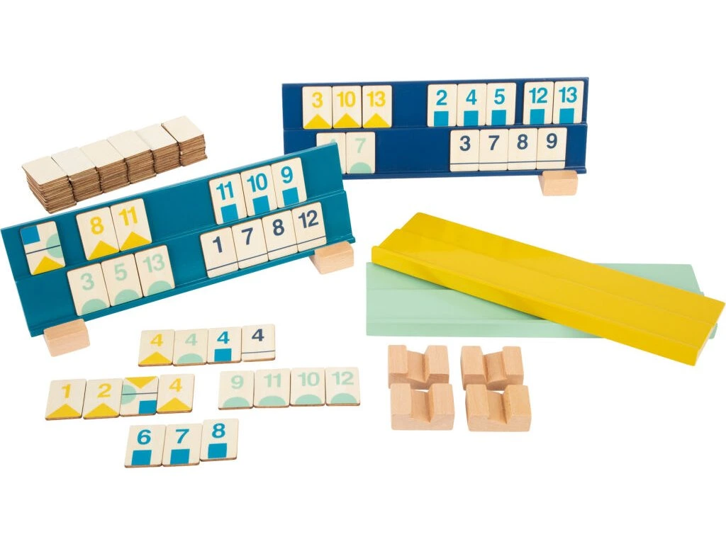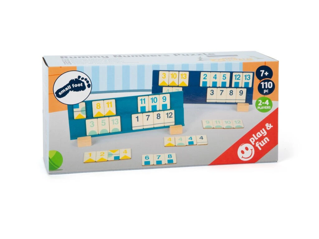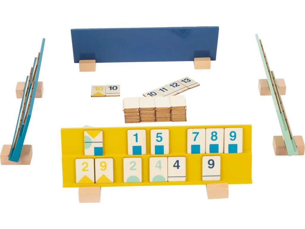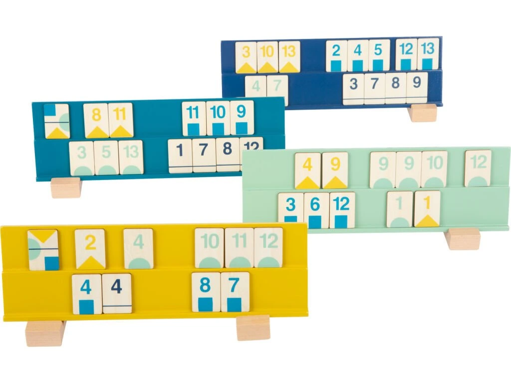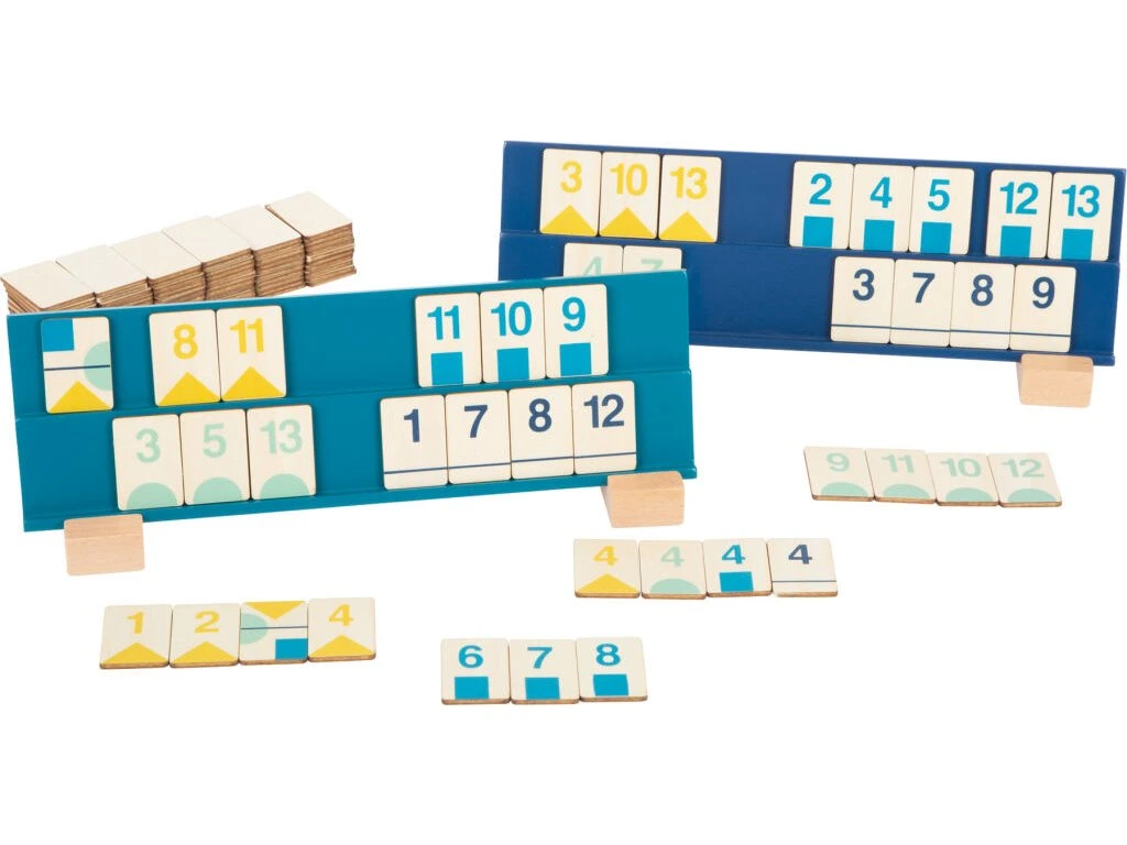 Rummy je klasická logická hra s čísly. Je populární u dětí i dospělých. Dřevěná hra v moderním designu zaujme nejen barevnou kombinací. Je vhodná i pro barvoslepé, dílky k sobě pasují kromě barvy i grafickým označením, které lze na dílcích také nahmatat.