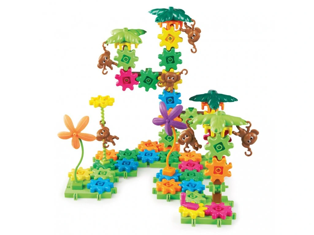 Podporujte kritické myšlení a řešení problémů s touto barevnou stavebnicí s motivem džungle. Sada pomůže rozvíjet jemnou motoriku díky skládání ozubených kol a pomáhá porozumět příčině a následku. Poskytuje tak praktické možnosti učení a hry zároveň. Hotové výtvory se budou točit s otočením pouze jedné rukojeti převodovky.