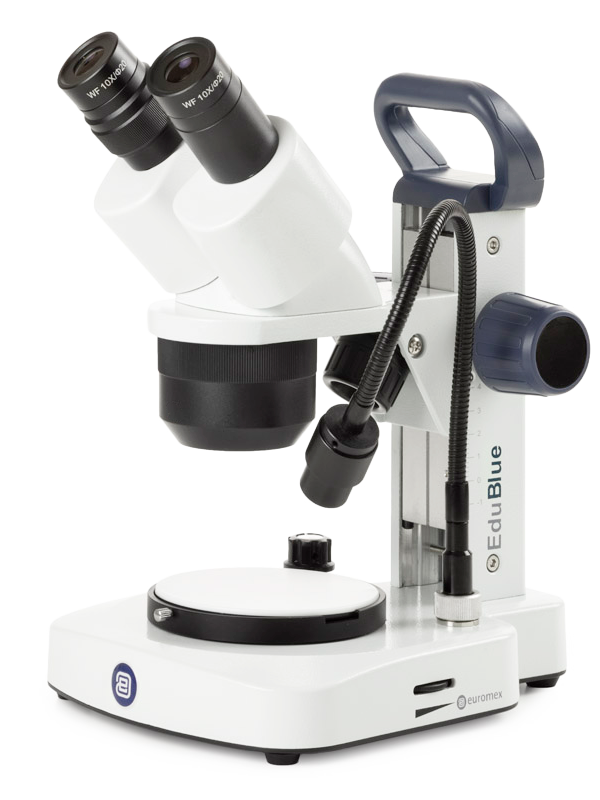 Moderní stereoskopický mikroskop speciálně navržený pro výuku na základních a středních školách. Ergonomický stojanem s držadlem pro snadné přenášení. Hlavice se dvěma párovými objektivy 1× a 3×. Vestavěné LED osvětlení.