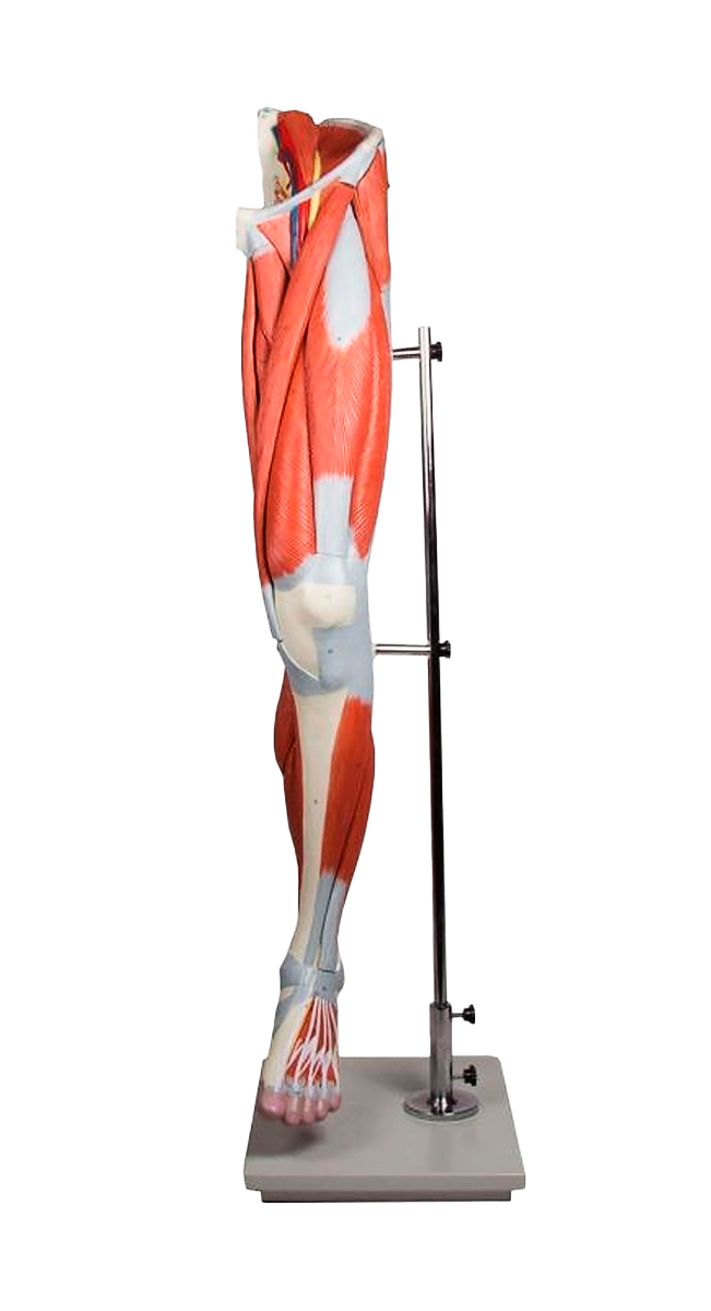 Model lidské dolní končetiny zobrazuje povrchové a hluboké svalové struktury, cévy, nervy a vazy. Model zobrazuje chodidlo, dolní a horní část nohy a také polovinu pánve.