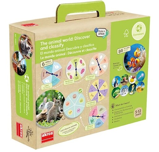 Děti se naučí poznávat různá zvířata podle jejich hlavních znaků: strava (býložravec/maso/ všežravec), přirozené prostředí (vzduch/země /voda), reprodukce (vejcorodí/živorodí), vnitřní kostra (obratlovci/ bezobratlí) atd. Roztočte ruletku a mezi 84 skutečnými obrázky zvířat hledejte zvířata, která odpovídají vlastnostem, na které ukázala šipka. Děti mohou hrát jednotlivě nebo v týmu. Na vývoji této hry spolupracoval biolog, profesor, spisovatel a vědecký komunikátor Rafa López Martín.
