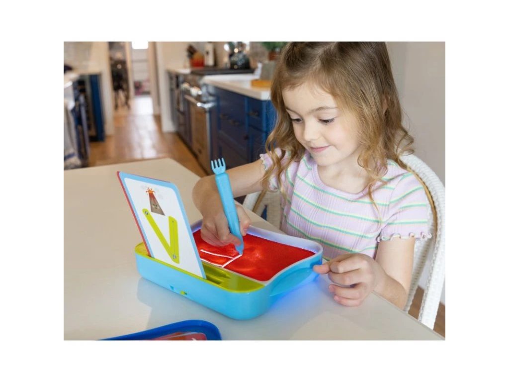 Svítící senzorická tabulka s pískem je inovativní vzdělávací pomůcka, která spojuje světelný efekt s kreativní hrou. Děti mohou kreslit přiloženým oboustranným perem nebo jen tak prstem do vrstvy písku, zatímco podsvícená tabulka zvýrazní jejich tvorbu. Tato aktivita podporuje fantazii, koncentraci i první kroky ke čtení a psaní.