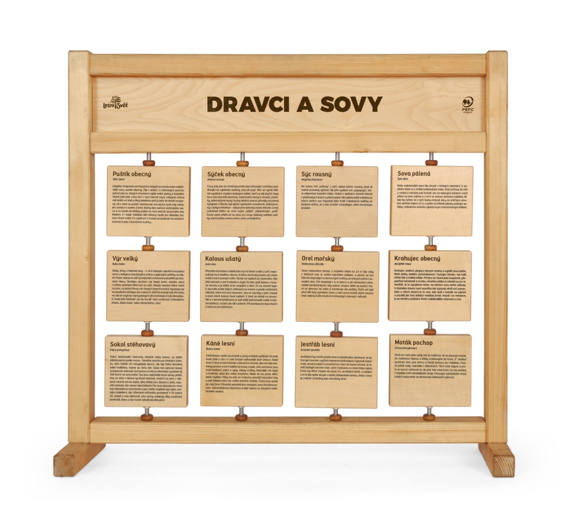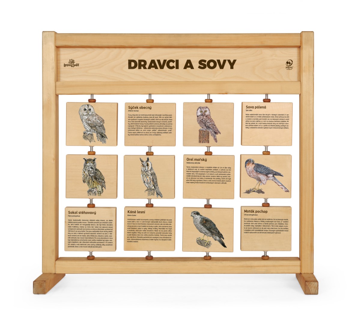 Hlavním lákadlem této edukační pomůcky je 12 otočných tabulek. Každá z nich nese originální a autorsky chráněnou kresbu od českých ilustrátorů. Díky interaktivnímu zpracování se děti i dospělí seznamují s dravci a sovami zábavnou formou, která je mnohem efektivnější než klasické učebnice.