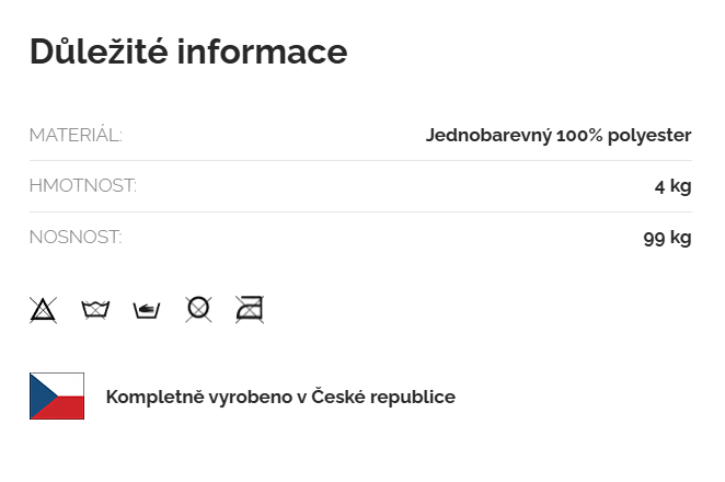 Vysoce kvalitní látka je nenáročná na údržbu. Případné nečistoty lze jednoduše odstranit vlhkou houbičkou s mýdlovou vodou.