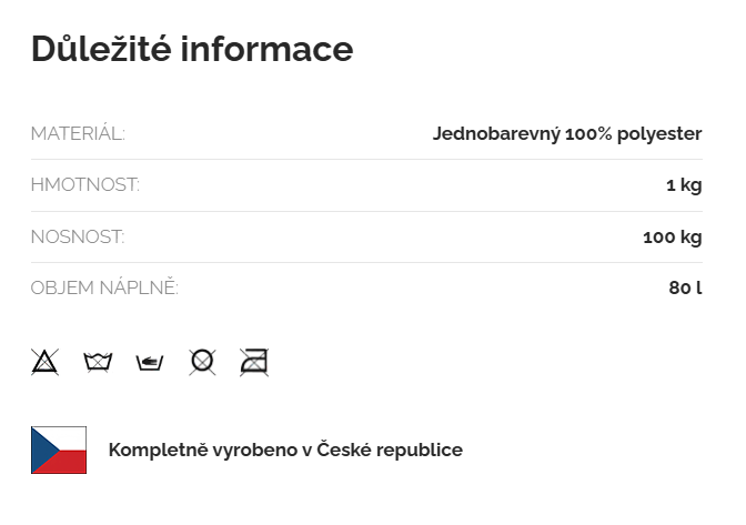 Vysokou odolnost, kvalitu a dlouhou životnost našich sedacích pytlů zajišťují dvojité švy, použití jen kvalitních a certifikovaných materiálů a také vícestupňová kontrola při jejich výrobě.