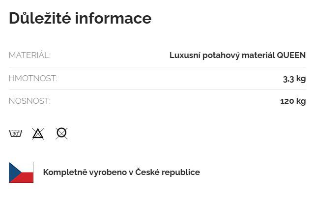 Jednovrstvý taburet se snímatelným potahem. Výplň taburetu je molitanová. Vysoce kvalitní látka je nenáročná na údržbu. Použitá potahová látka QUEEN má Test oděru Martindale: > 35.000 otáček. Případné nečistoty lze jednoduše odstranit vlhkou houbičkou s mýdlovou vodou, případně lze potah sejmout a vyprat v pračce.