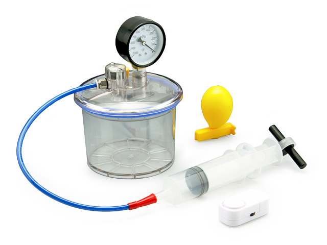 Tlaková a vakuová souprava se používá mimo jiné k prokázání změny bodu varu vody při poklesu atmosférického tlaku, změny objemu balonku ve vakuu. Součástí soupravy jsou také gumové Magdeburské koule. Dále je možné ukázat, že zvuk se nemůže šířit ve vakuu. Plastová stříkačka a jednosměrný ventil slouží jako cenově dostupná vývěva.