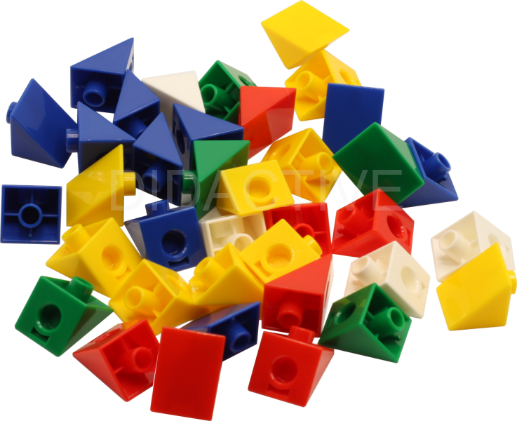 Tato sada obsahuje 300 plastových trojbokých hranolů s podstavou ve tvaru pravoúhlého rovnoramenného trojúhelníku, kompatibilních se spojovatelnými kostkami o hraně 2 cm. Díky nim mohou děti vytvářet trojúhelníkové konstrukce, střechy, sklony a kreativní geometrické stavby.