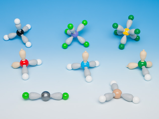 Sada Molymod® obsahuje dostatečný počet atomů, tvarů Molyorbital ™ podle elektronové repulzní teoriea a vazeb na vytvoření 8 modelů vybraných základních sloučenin: HCl, BeCl2, H2O, BH3, NH3, CH4, PCl5, SF6. Každý model je příkladem různých orientací vazeb a pokrývá koordinační čísla 1 až 6.