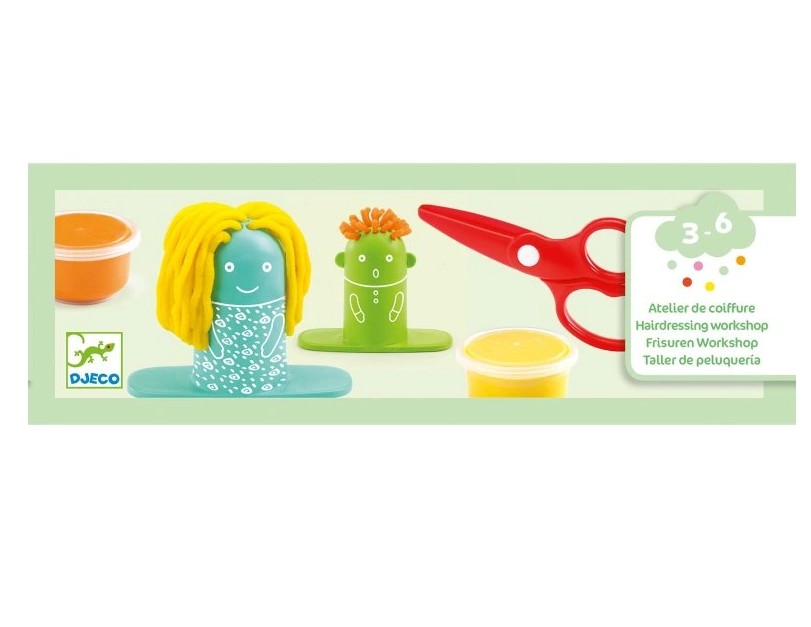 Originální a zábavná modelářská aktivita pro děti od 3 let. Dítě si hraje na kadeřníka a tvoří účesy 2 přiloženým postavičkám.
