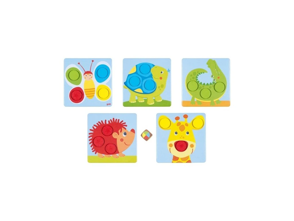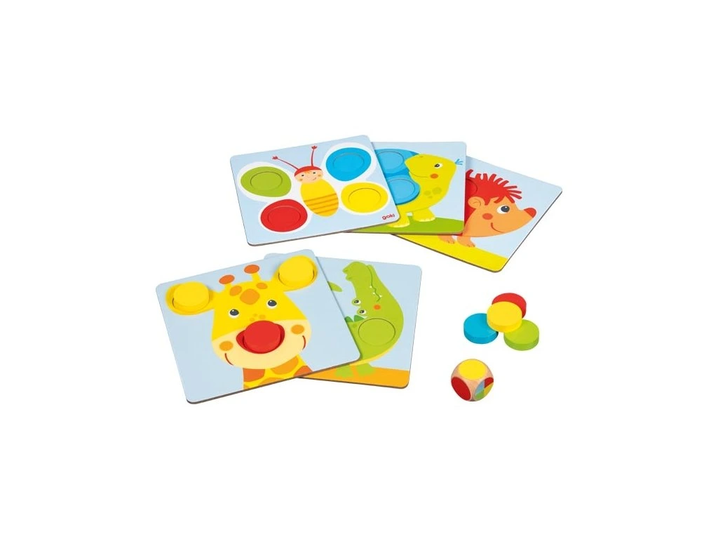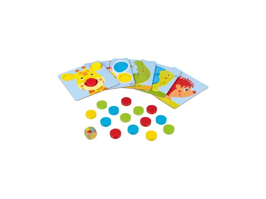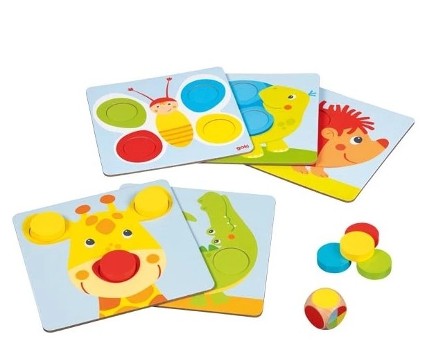 Skvělý způsob, jak děti seznámit s barvami, rozvíjet logické myšlení a jemnou motoriku. Pomocí barevných dřevěných žetonů děti přiřazují barvy k odpovídajícím políčkům a zábavnou formou objevují svět kolem sebe.