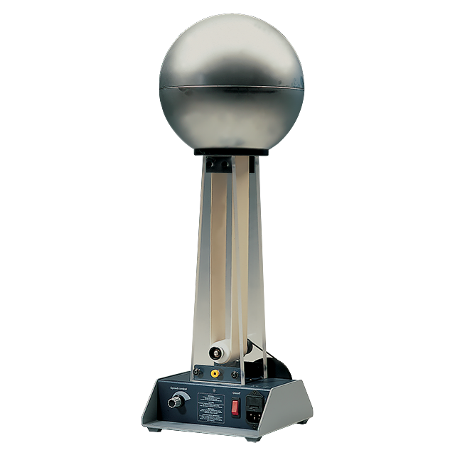 Učební pomůcka Van de Graaffův generátor s průměrem konduktoru 220 mm slouží jako zdroj velmi vysokého napětí s nízkými proudy pro elektrostatické experimenty.