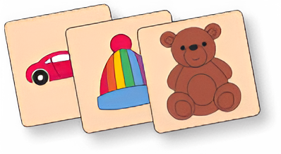 Sada obsahuje 36 karet s věcmi, které děti běžně znají - dopravní prostředky, oblečení, sportovní předměty, hračky, nábytek, potraviny a další. Předměty jsou v různých snadno identifikovatelných barvách.