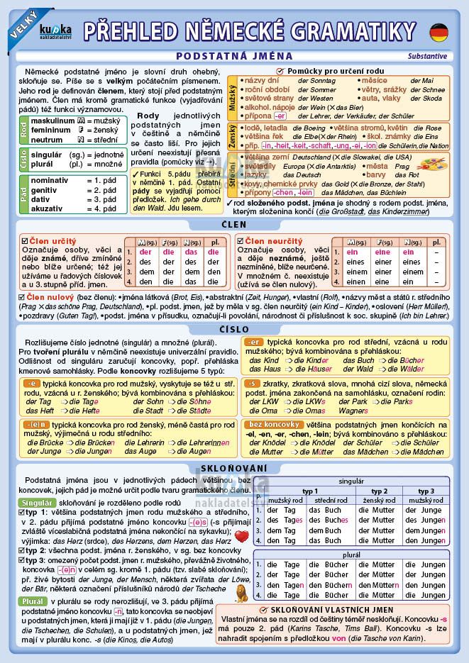 Ucelený přehled německé gramatiky ve větším a přehlednějším formátu A4.