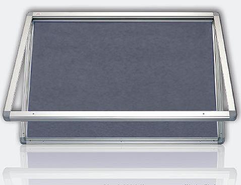 Elegantní vitrína s horizontálním otevíráním pro interiérové použití, rozměr 90 x 120 cm, robusní hliníkový rám. Uzamykatelné polykarbonátové dveře pomocí patentního klíče. Zadní strana z pozinkovaného plechu, filcový povrch. Montážní sada.
