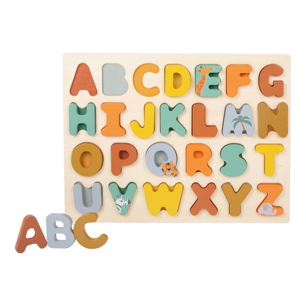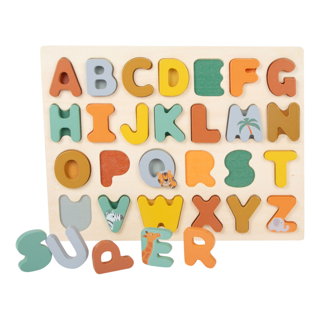 Naučte se abecedu hravým způsobem! S tímto dřevěným puzzlem v trendy barvách se děti naučí abecedu a procvičí si jemnou motoriku formou hry. Najdete zde 26 vystouplých dřevěných písmen, která lze jednoduše uchopit a vložit do správných otvorů i malýma rukama. Můžete je ale také postavit mimo své otvory a složit slova! Roztomilé motivy safari jako zebra, žirafa, slon nebo tygr děti nadchnou k učení se písmen abecedy.