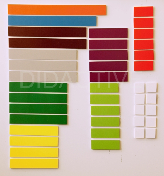 Délka destiček: vždy násobek 3 cm, barevně odlišené.