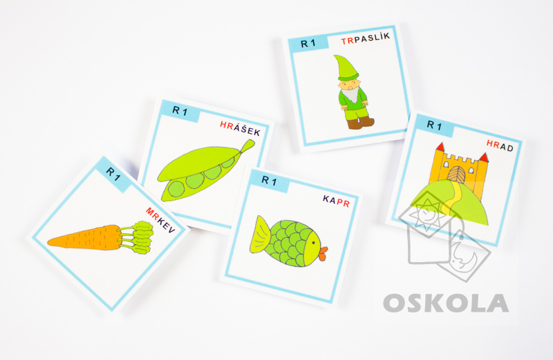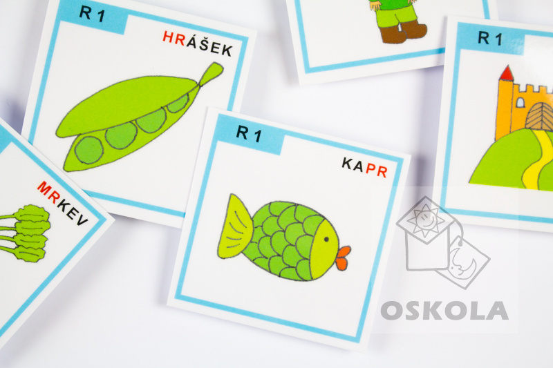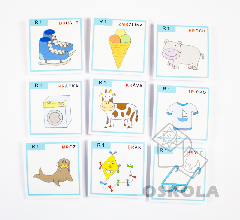 Tato sada procvičuje hlásku R a obsahuje 24 kartiček se zvýrazněnou hláskou.