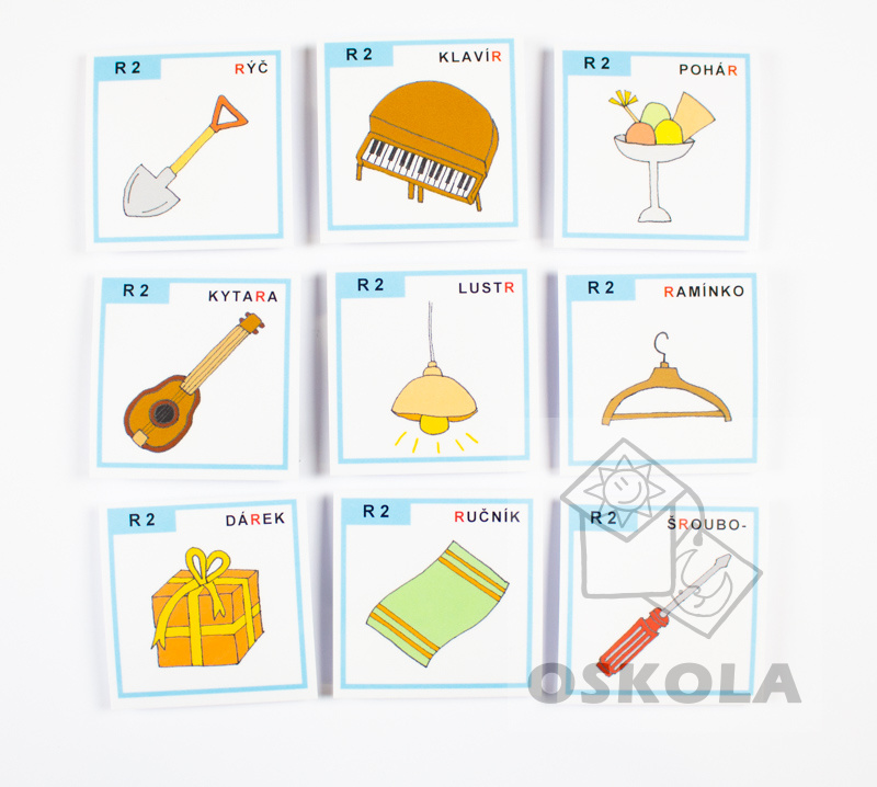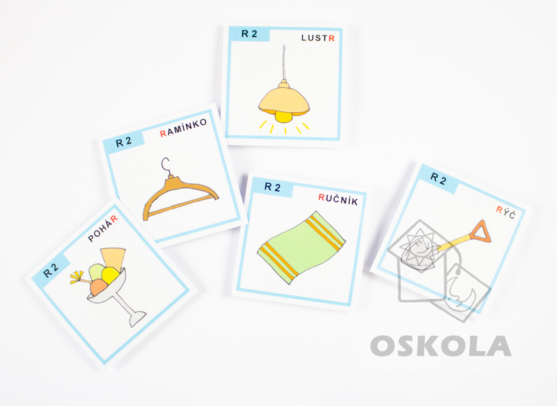 Tato sada procvičuje hlásku R a obsahuje 24 kartiček se zvýrazněnou hláskou.