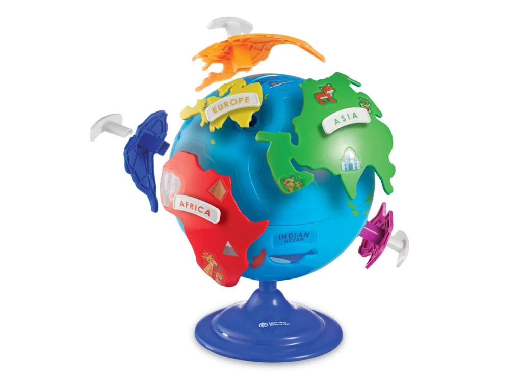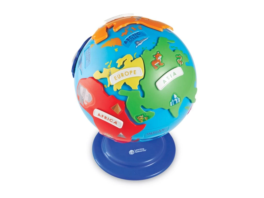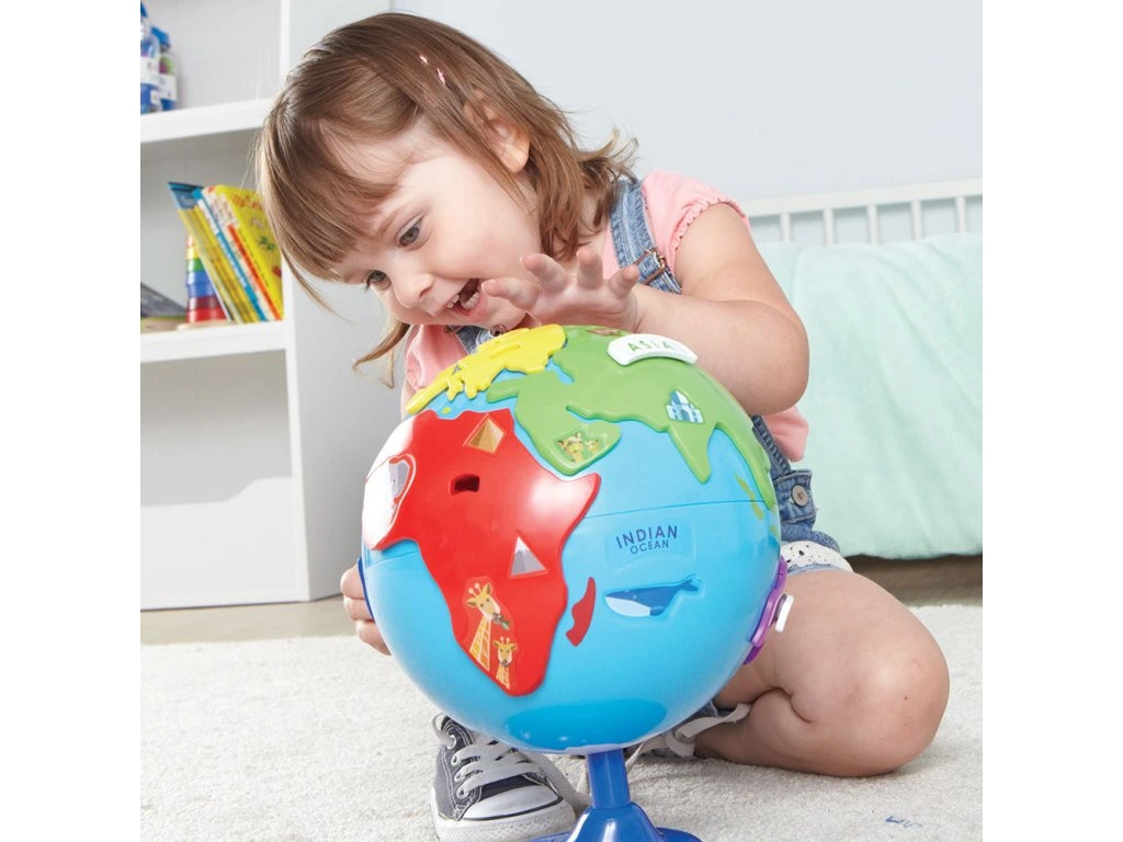Originální a interaktivní cesta k poznávání zeměkoule, tvarů kontinentů, zvířat a nejznámějších památek. Každý barevný dílek (kontinent) se vejde do jednoho otvoru na zeměkouli, aby se dal snadno umístit i pro nejmenší. U dětí rozvíjí znalosti o zeměkouli, logické myšlení, jemnou motoriku i prostorovou orientaci. Rozměry glóbu jsou 34 x 28 x 24 cm. Vyrobeno z odolných materiálů.