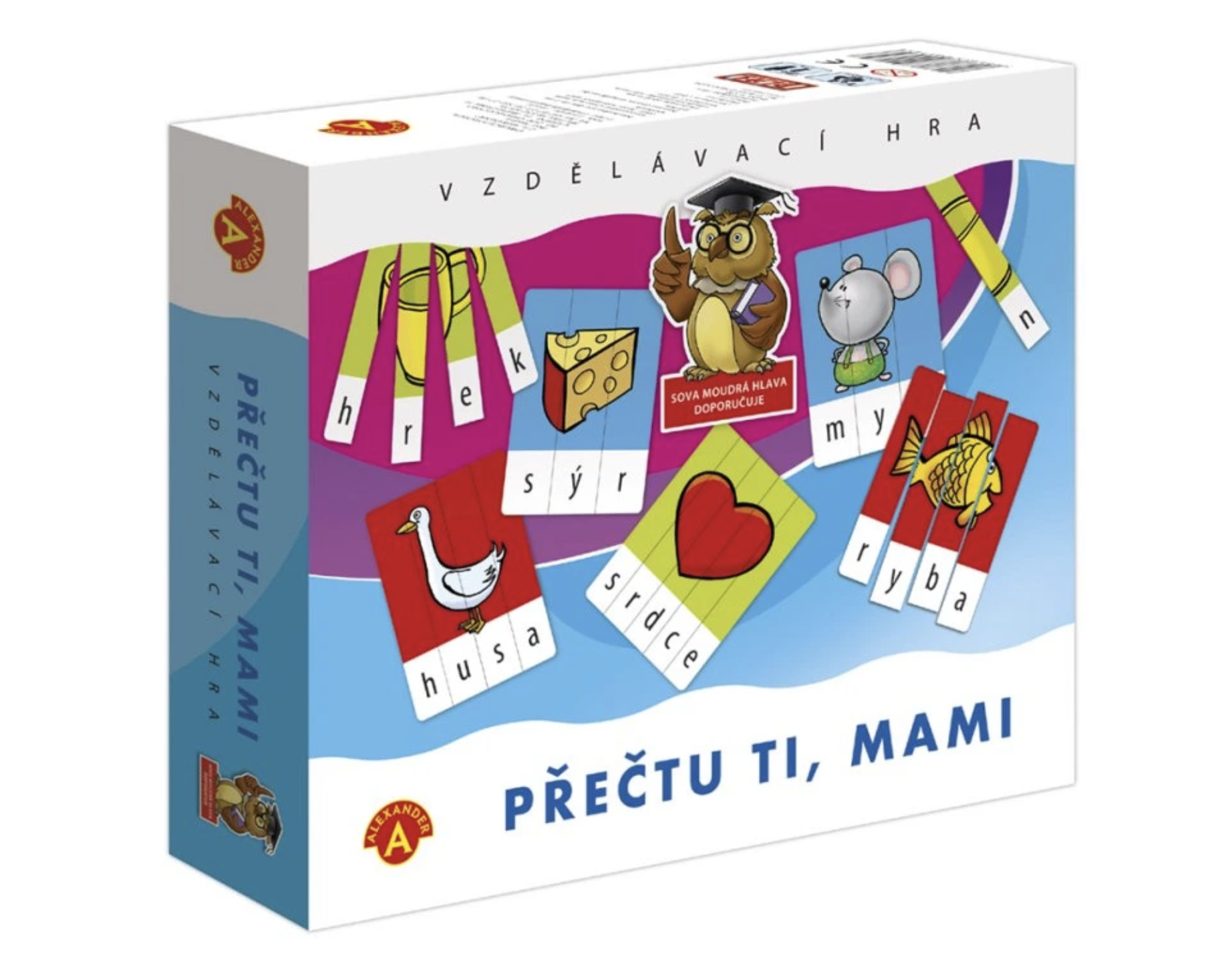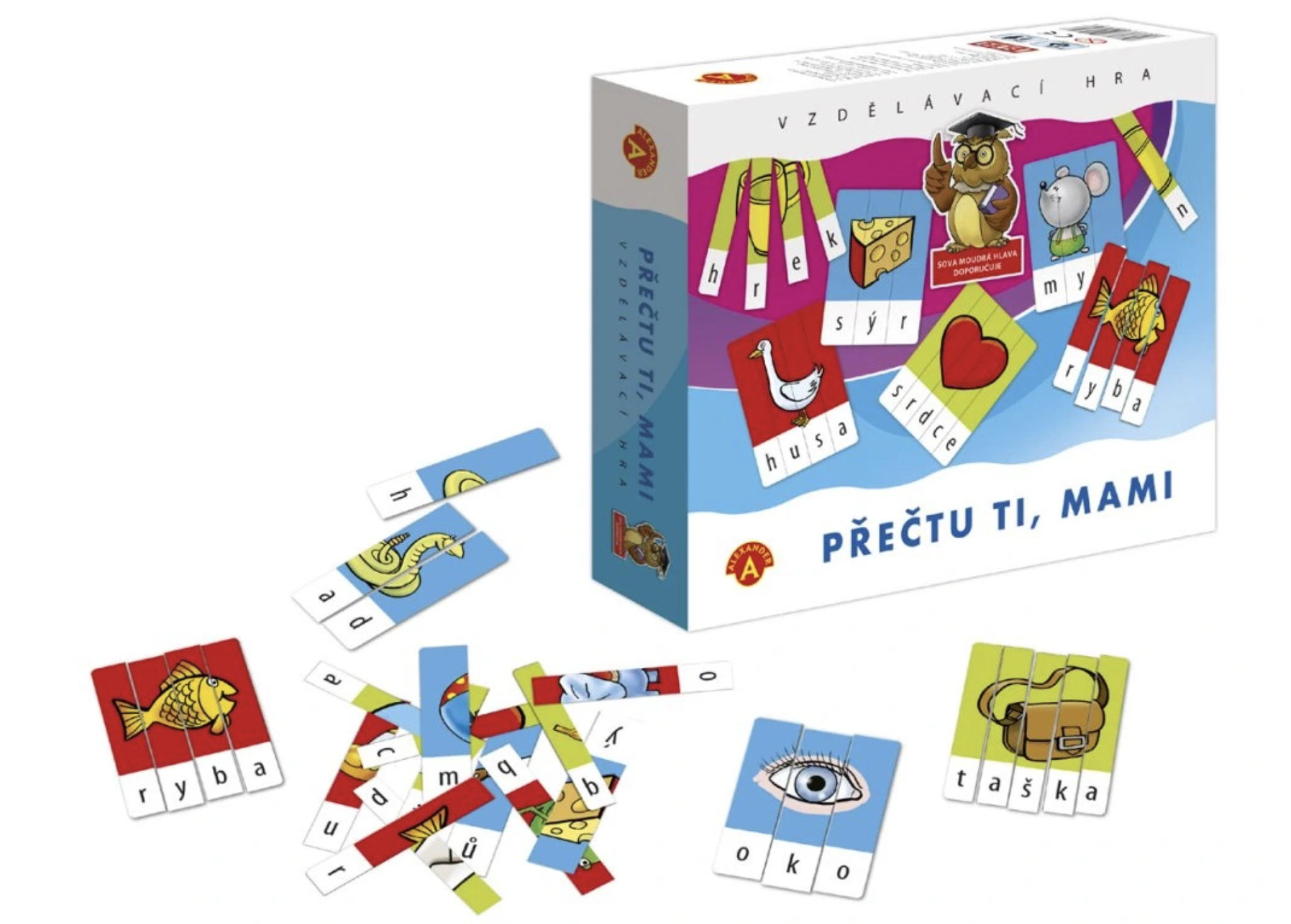 Vzdělávací hra pro skládání prvních slov, která obsahuje krásné barevné obrázky.