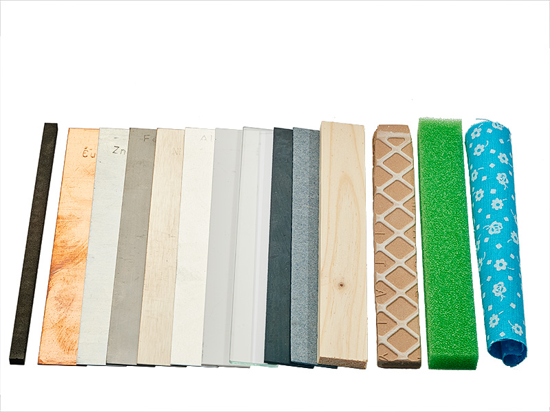 14 vzorků pro zkoumání mechanických, tepelných, magnetických a elektrických vlastností